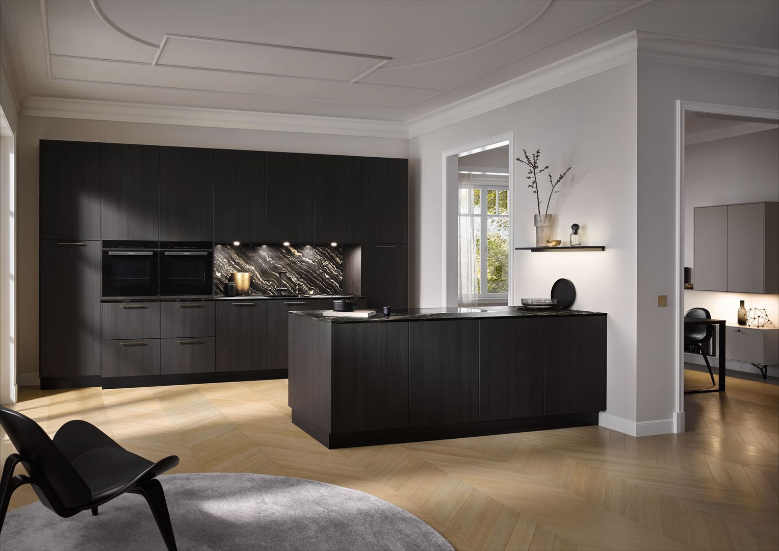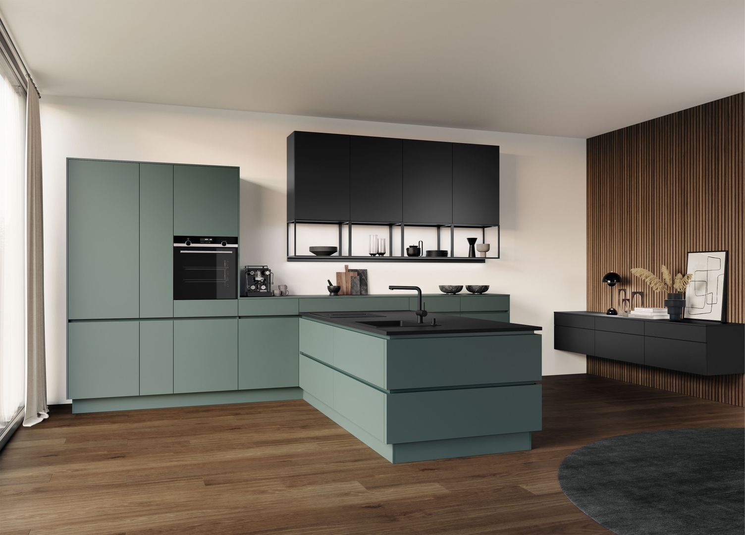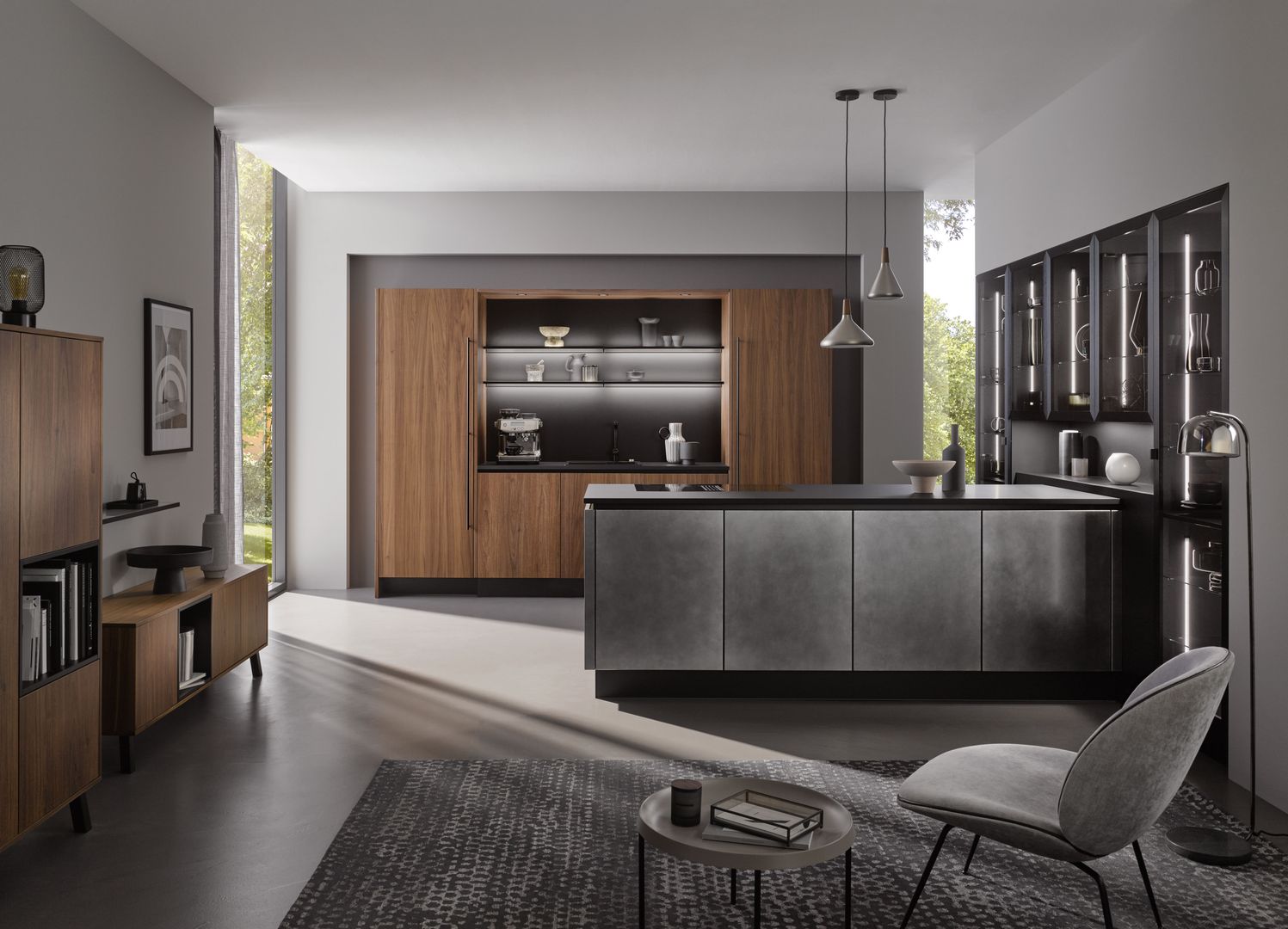 Wie sieht die Küche in den 2020-er Jahren aus? Eines ist klar: Sie ist offen für Neues. Offenes Wohnen ist so aktuell wie nie zuvor, und die einzelnen Lebensbereiche verschwimmen. In der Küche wird gearbeitet, gustiert und gekostet, auch gegessen, gechillt und verweilt. Das nicht mehr so wie vor einigen Jahren meist in klinischem Weiß, sondern in eher dunkleren Tönen. Dabei reicht der Bogen von Anthrazit über Mitternachtsblau und Tannengrün bis zu dunklen Hölzern, in die sich immer wieder ein neuer, leichter Rosé Ton mischt und für frischen Wind sorgt. Diese Farbwelt ist oft matt, in Anti-Fingerprint Optik, meist grifflos und mit vielen praktischen Details gespickt. Es gibt unzählige Varianten, um typische Küchenhelfer verschwinden zu lassen, die dann mit einem Handgriff sofort parat sind. Die Zeiten, in denen die Küche offensichtlich mit ihren technischen Hilfsmitteln geprahlt hat, sind Schnee von gestern. Alle Linien sind klar und puristisch. Die Küche beeindruckt als stylishes Designmöbel und Blickfang zugleich.
