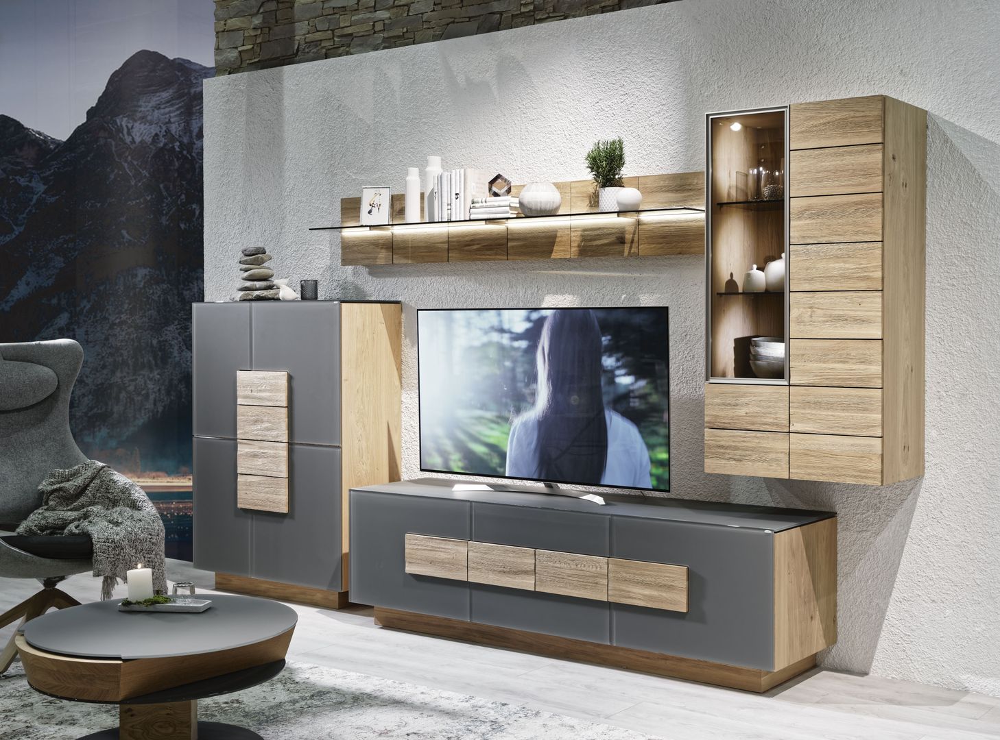 Im Wohnzimmer darf es auch ein bisschen mehr sein. Purismus ist das Eine, der topaktuelle Trend nach üppiger Deko das Andere. Es muss nicht immer schlicht sein und weniger ist auch nicht immer mehr. Deshalb halten auch wieder Samt, Seide und Brokat Einzug in unsere Wohnzimmer. Dazu gesellen sich warme Holztöne bei Regalen, Kommoden, Vitrinen und TV-Möbel.